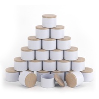 Bocaux à bougies vides 4oz bougies de cire parfumées étain blanc bougie mat, boîte à café, porte-thé avec couvercle en bois Style Grain en gros