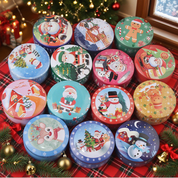 Pot de bougie vide de conception de mélange aléatoire de cylindre sans couture de 2.2OZ avec boîte en étain de motif de Noël pour le cadeau de bricolage pot en étain de bougie parfumée